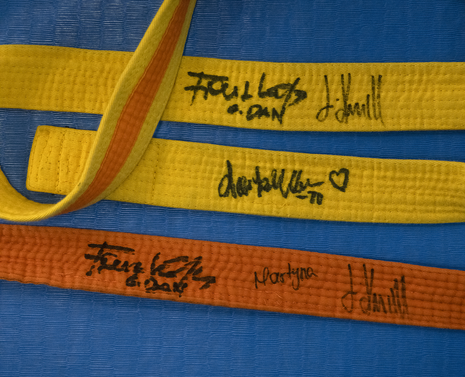 Auf den Gürteln fanden sich Autogramme von Lukas Krpalek, Martyna Trajdos, Laerke Olsen und eben Franz!
